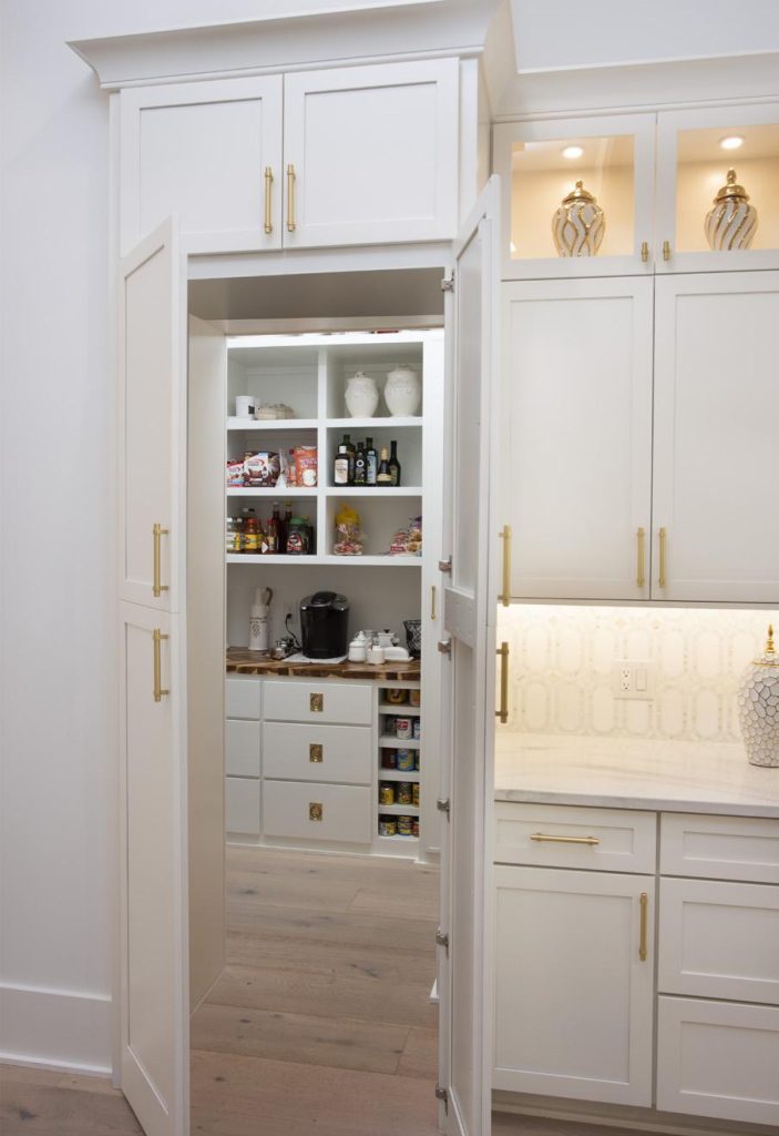“The kitchens were a focal point in many of our interior design discussions,” says Kathryn Drury, interiors coordinator for Full Circle Development. “Cooking is not just about the food for this family. It is about the experience.” Drury and the homeowners, with Center Point Cabinets, Billy Wood Appliance, Savannah Surfaces, and Counter Fitters, designed four distinct kitchens: ‘His,’ ‘Hers,’ ‘Family,’ and ‘Guest,’ each serving a unique purpose. The main kitchen, Family, with its expansive island and perimeter counters offers plenty of space for in-kitchen dining as well as food preparation and buffet. Keeping the main kitchen counters free of clutter and display was accomplished by designing a hidden pantry that blends with the cabinetry.