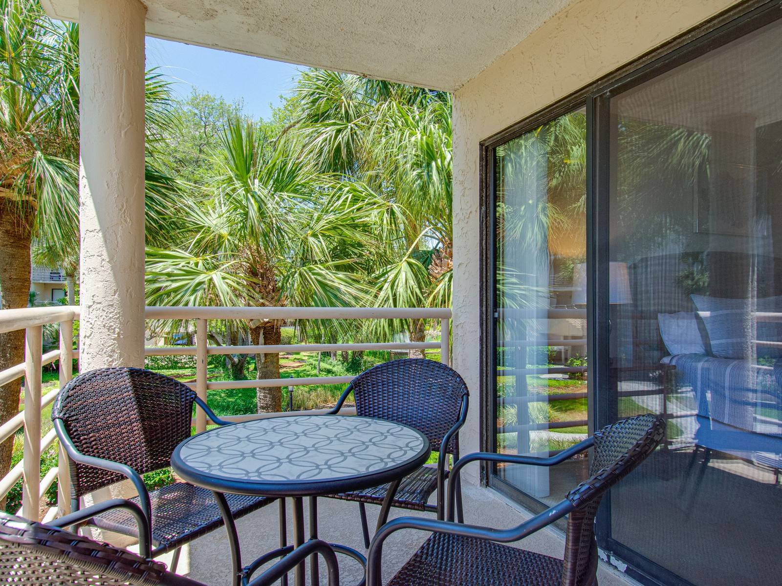 1105 Villamare is a beautiful, open, airy, coastal, and bright 2-bedroom villa! There are beige tiled floors throughout the main living area and the bedrooms are carpeted. Villamare villas are set up so that you enter the open living area, and the bedrooms are on either side, so everyone can enjoy their privacy.