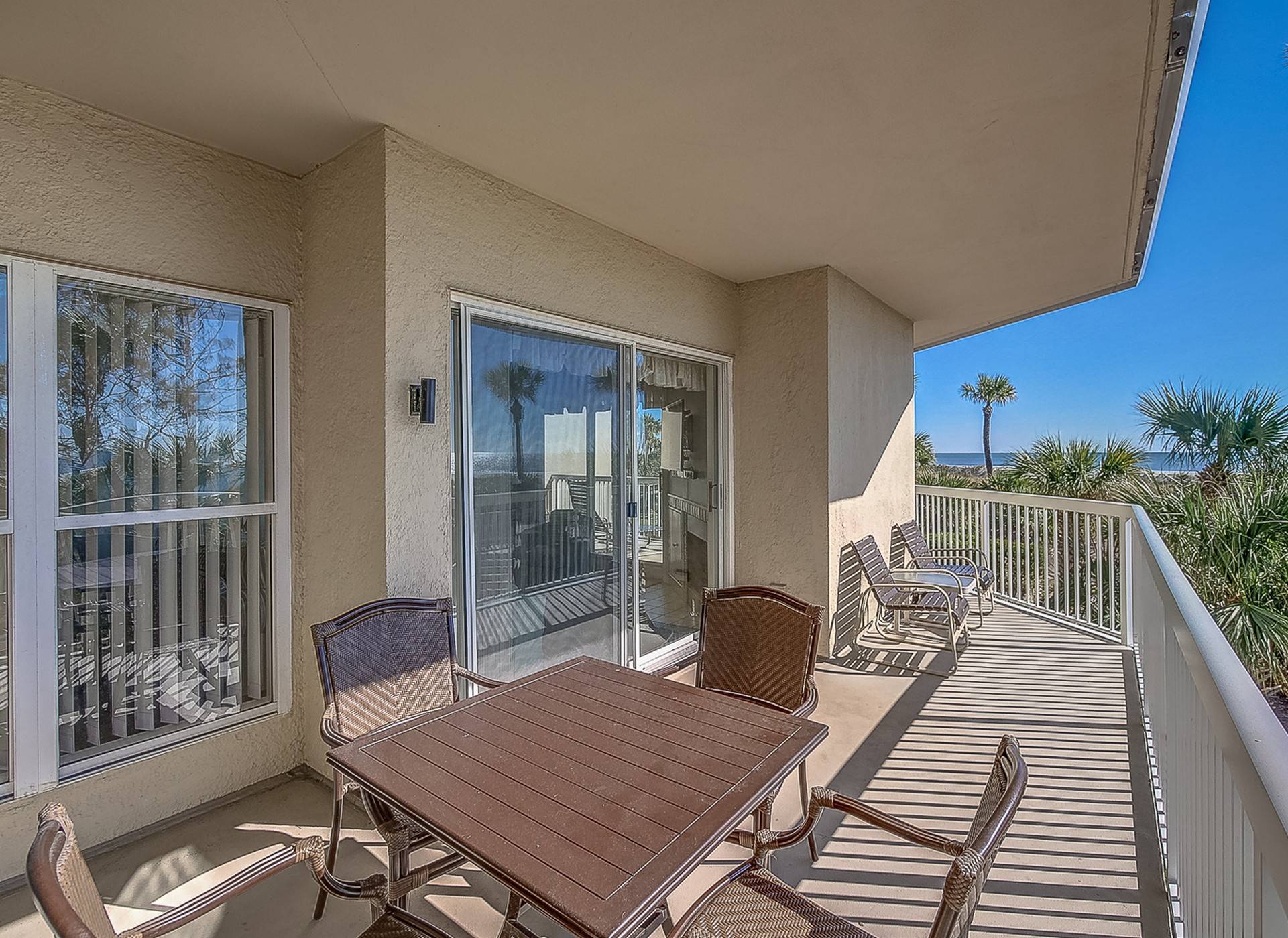 113 Barrington Court, in the beautiful Palmetto Dunes community, is a wonderful, oceanfront 3-bedroom, 3-bathroom villa on the first floor of the Barrington Court complex. Each bedroom has gorgeous ocean views, not to mention the amazing views from the main living area. The star of the show is definitely the balcony which has sweeping views of the ocean. Enjoy a cup of coffee with the sound of the waves crashing just beyond your villa. Every bedroom has access to the deck as well as the living room.