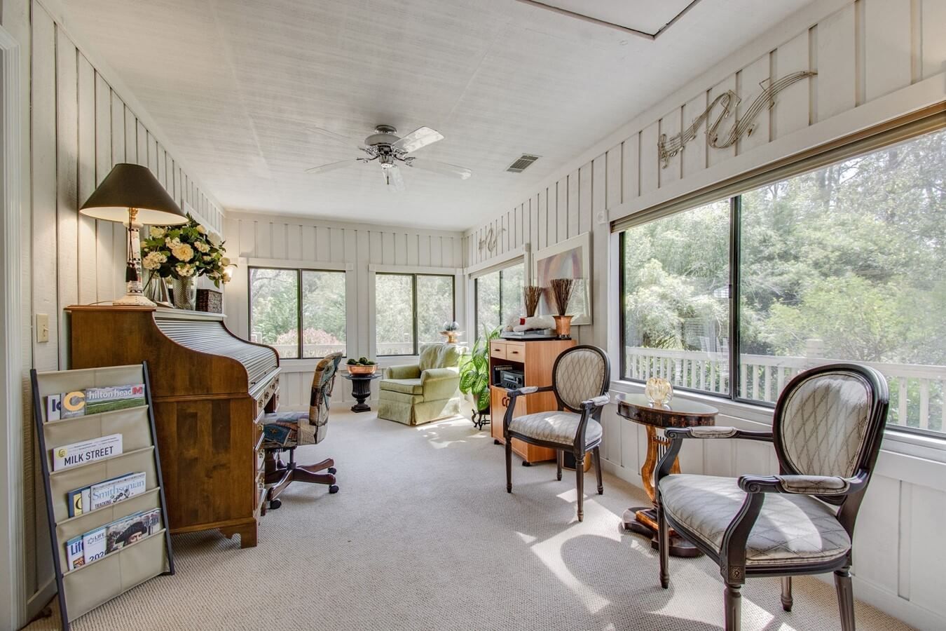 Excellent value on updated and superbly maintained open floor plan home with quiet, private end of cul-de-sac location in popular Hilton Head Plantation. Features include updated kitchen (custom cabinetry, solid surface and quartz counters, high end stainless steel appliances, etc.), wood flooring, built-ins, Charleston brick FP, spacious master suite with dual closets and updated bath (twin vanities, jetted garden tub, tile surround walk-in shower), walls of windows to expansive wrap around deck and yard with mature plantings incl. fig and lemon trees, excellent interior and exterior storage. All with inviting curb appeal, newer roof and mechanicals.