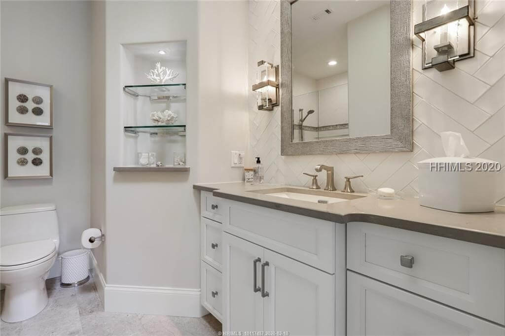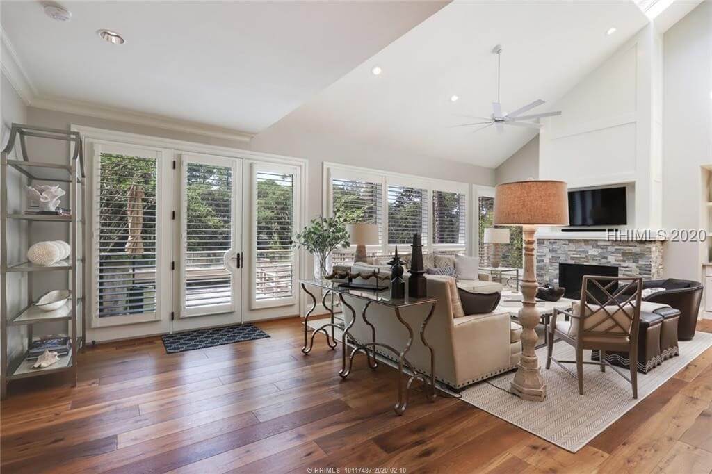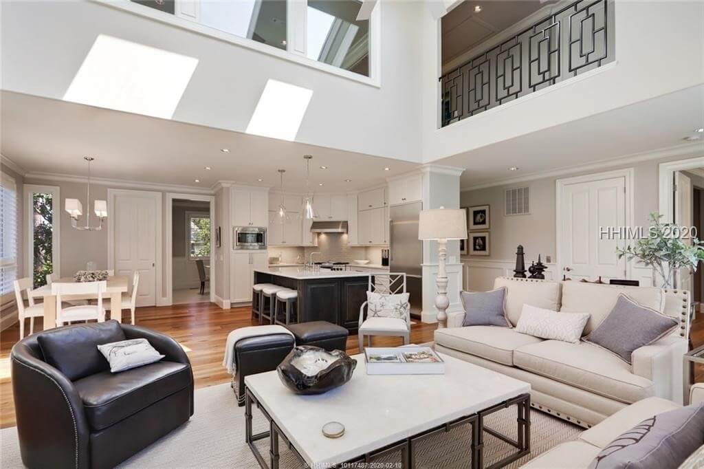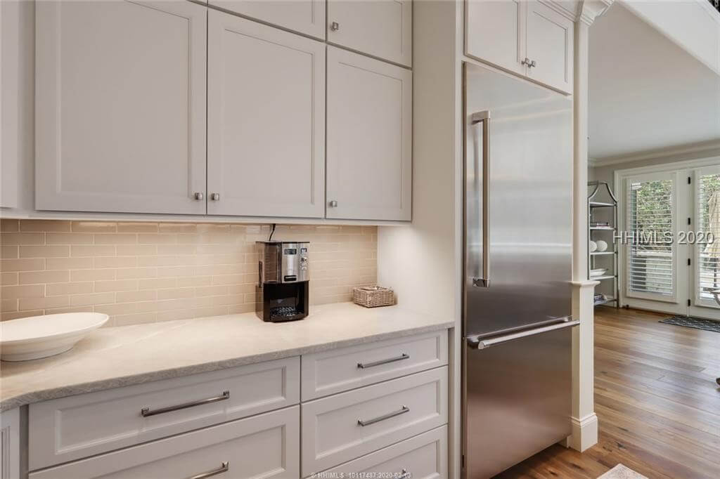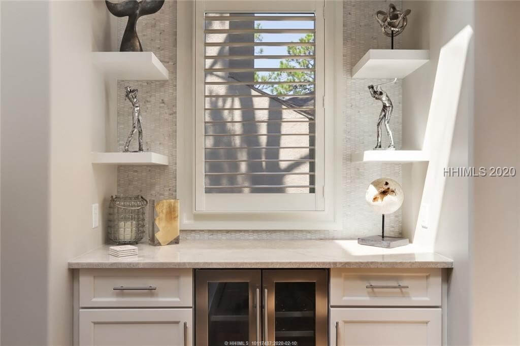 Elegant, sleek and sophisticated best describe this marsh front townhouse renovated in 2016. Main level offers living, dining, open eat in kitchen, fireplace, bar, powder rm, laundry and master suite. Upstairs 2 bd/ba and media room. Lower level houses 4 car garage and workshop. Elevator connects all levels. Every surface was touched in 2016 – new kitchen, baths, flooring, lighting, windows, drywall, hot water heater, new roof and gutter system. Exterior repainted in 2018. New HVAC unit 2018. List of improvements available. Pine Island Club offers its own pool and tennis. Quarterly POA fee $1172 covers landscaping, trash removal, pest.