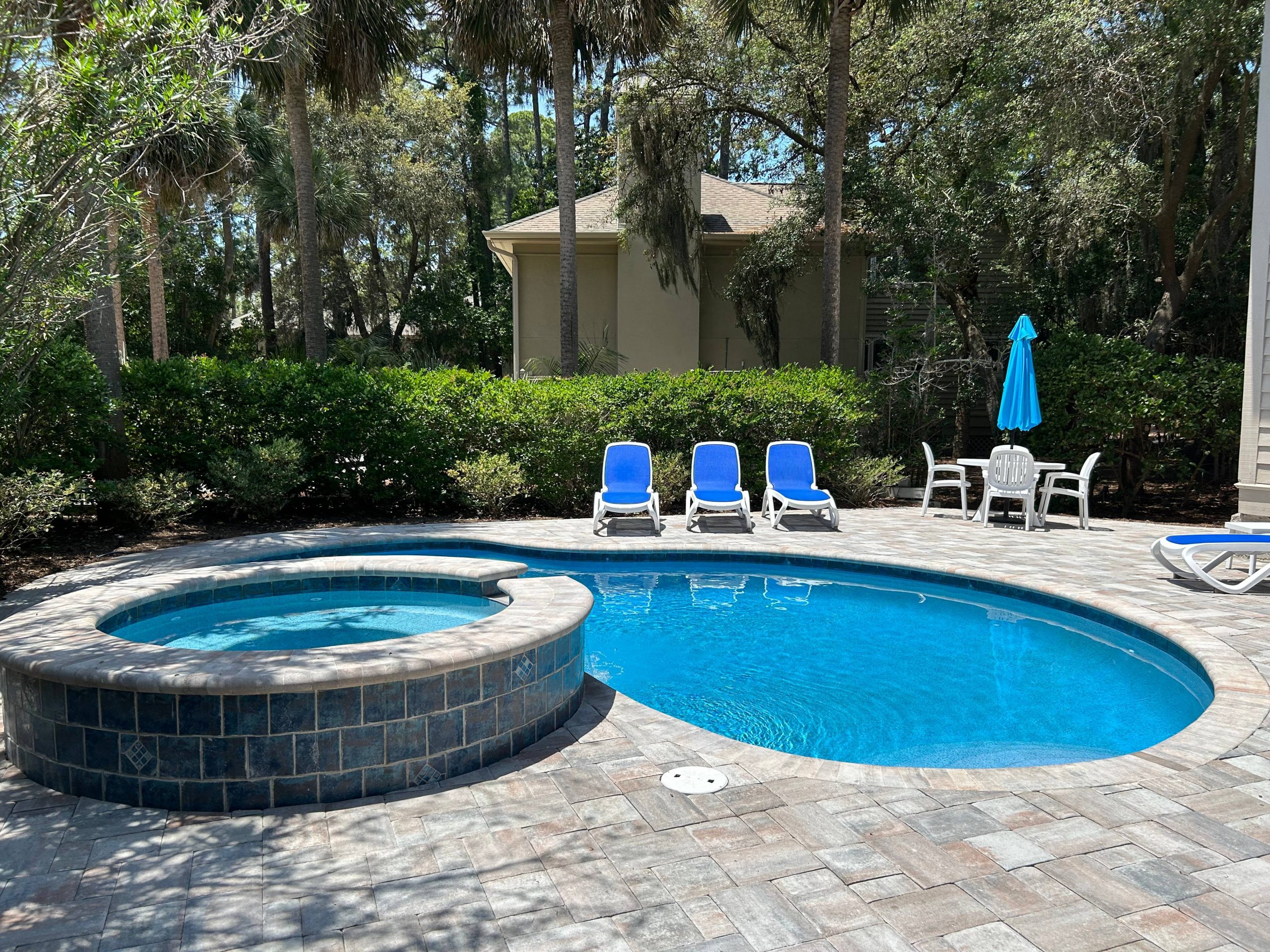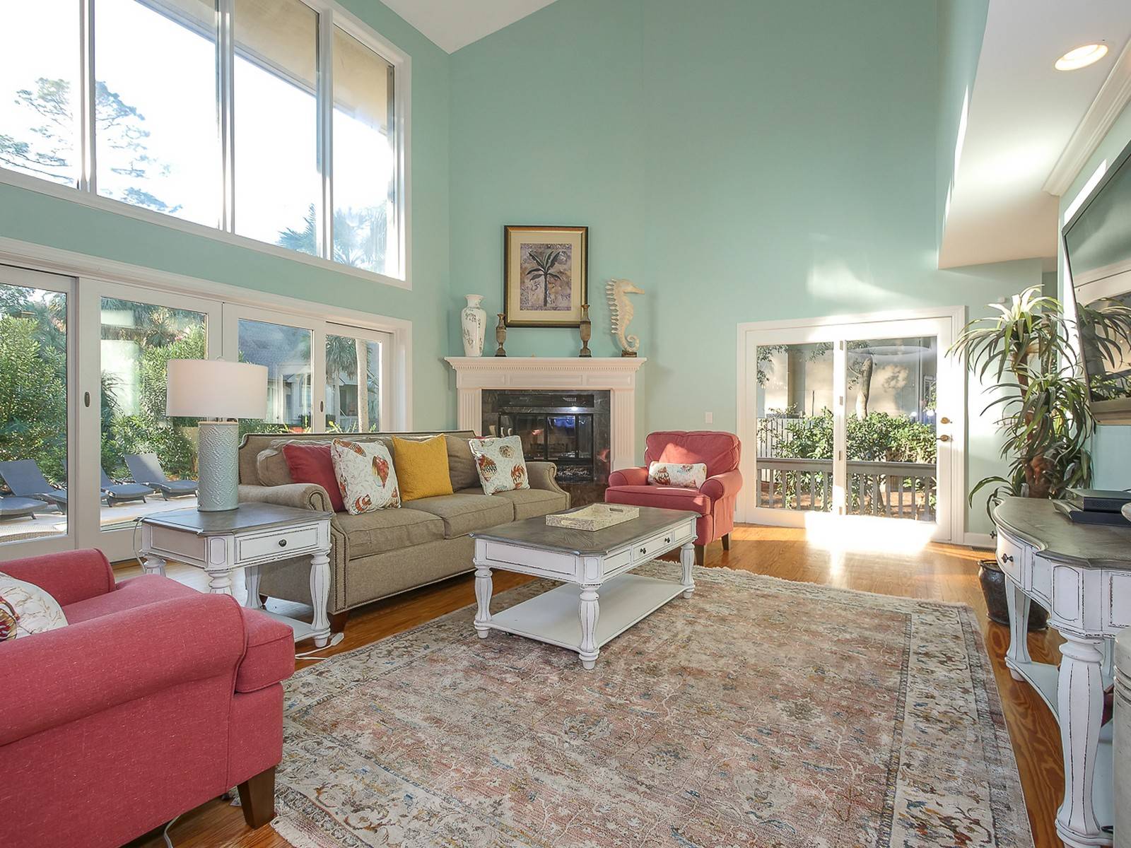 This beautiful 6 bedroom, 4.5 bath home is located on the ocean side of Sea Pines Drive in Sea Pines Plantation on beautiful Hilton Head Island. The floor plan is fantastic for family and friends, gatherings and special occasions! A spacious home with two living areas. The new owners updated the furnishings, installed flat screen TV’s and more. On the first floor is the main living room, dining area, kitchen, half bath, laundry and large master suite. The fully-stocked kitchen has plenty of room to entertain and watch the chef of the night cook up great meals for everyone!
