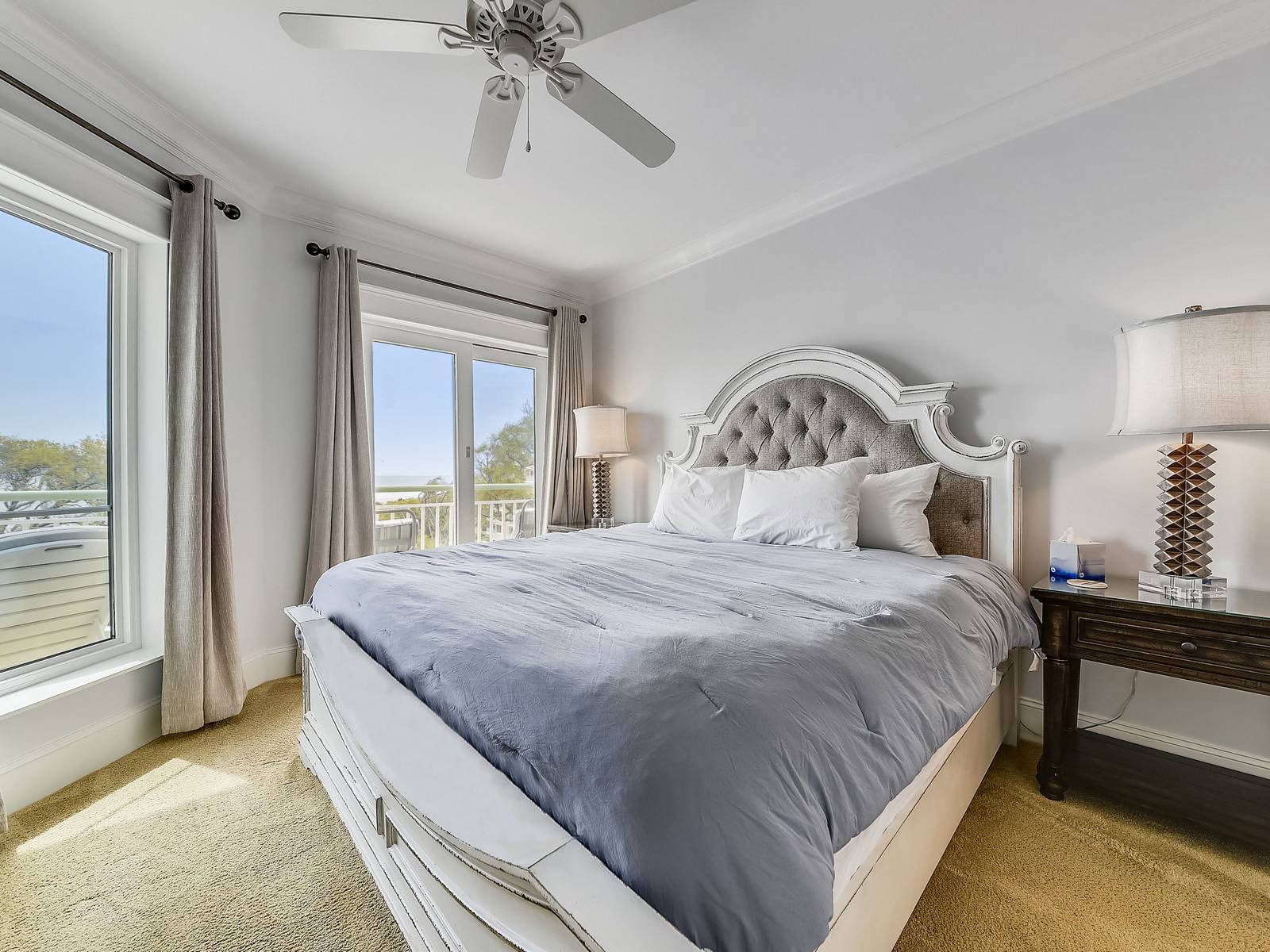 The grand master suite includes opulent furnishings that include a new California King sized bed, accent chair, 55″ LED high definition television, walk-in closet, a spacious bathroom featuring a large walk-in shower and a large double vanity. The master bedroom has a private doorway onto the balcony with two cushioned reclining chairs and matching ottomans. Relax and enjoy a morning beverage while overlooking the spectacular ocean sunrise from the balcony.