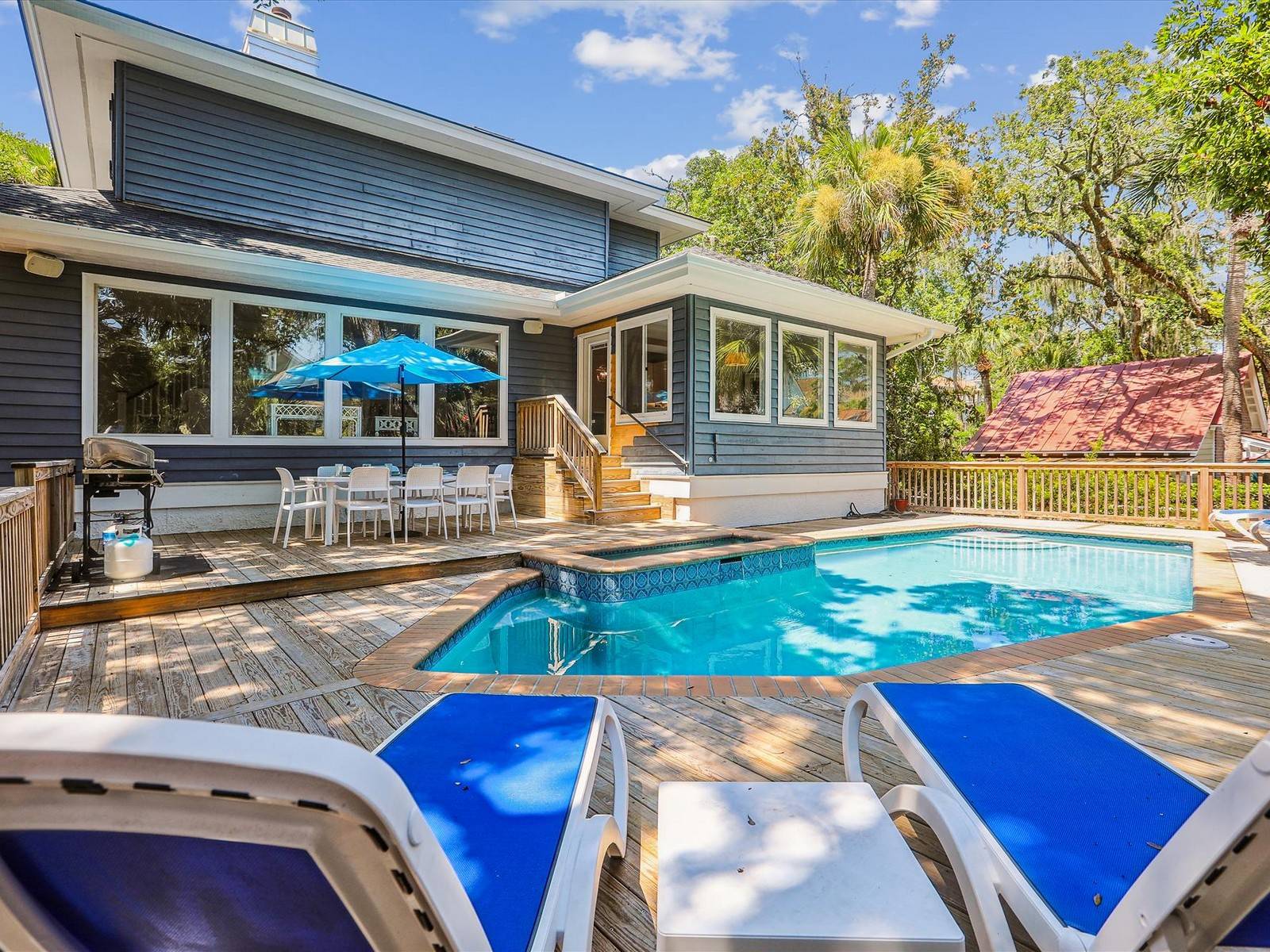 The home is located only steps from the pristine beach on Hilton Head and a short bike ride to Coligny Plaza and the tennis courts. There is a private pool and spa at the home, a large pool deck, a table that seats eight, four lounge chairs, two additional chairs and a Char-Broil grill. A great place to relax in the sun and enjoy an outdoor meal! Parking is permitted in the attached garage, additional parking space available in the driveway at the home.