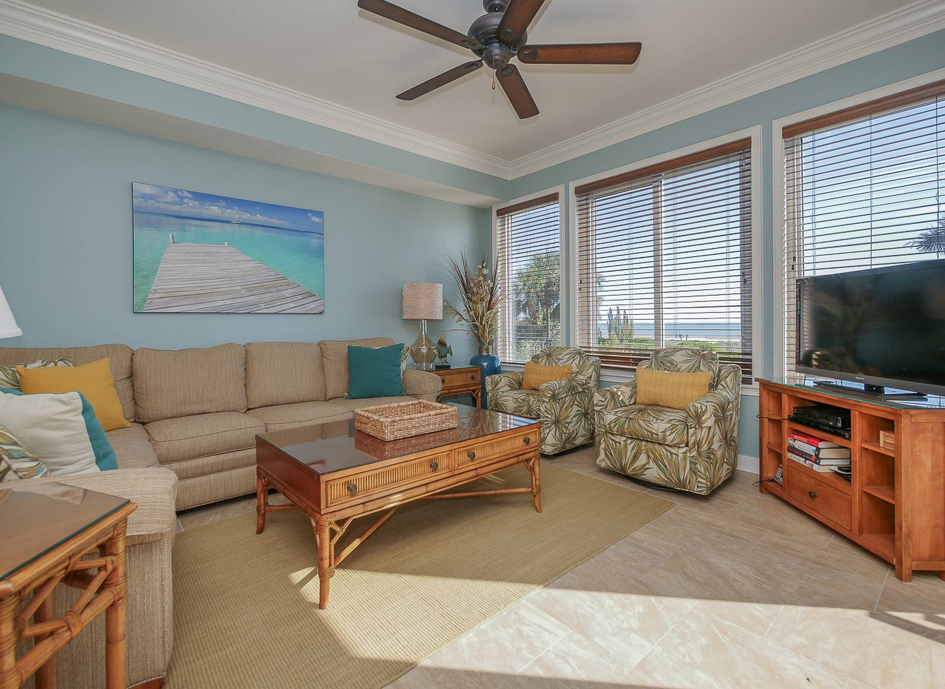 3104 Sea Crest is a 2 bedroom/2 bath oceanfront Hilton Head Island vacation rental. Located on the 1st floor, the amazing eye level views of the ocean will take your breath away. And once you take in the beautiful ceramic tile floors, wainscoting, tall windows, and plush modern furnishings with an “island twist”, you will be so delighted you may not want to leave!