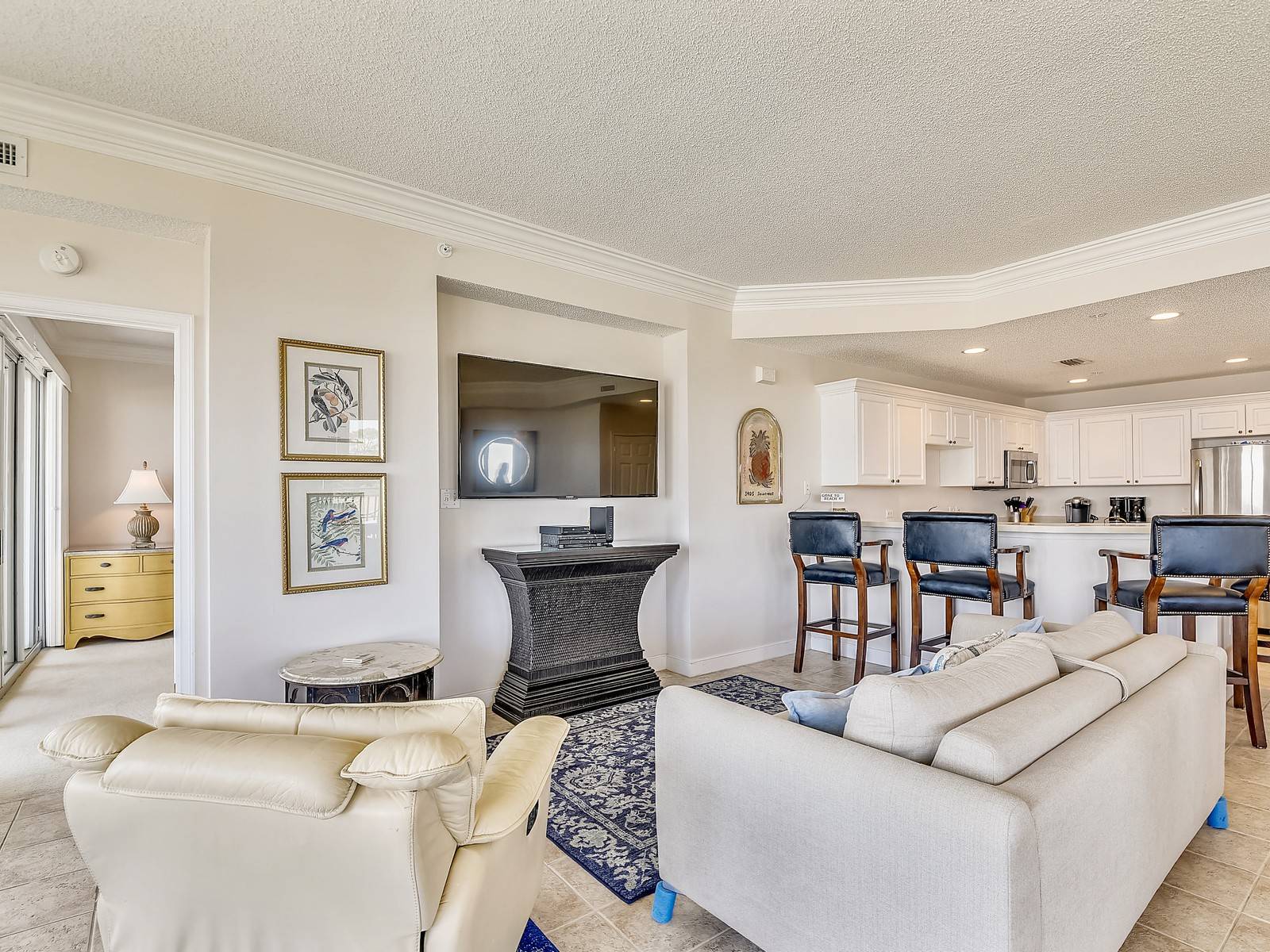 The highlight of this villa is the view of the beach and ocean that can be enjoyed from almost every space. The large main balcony features a table and 4 chairs. Two additional chairs are also available for viewing the sunrise with your family. With such close proximity to the beach, and the amenities offered by the Sea Crest resort, this is an excellent choice for your next stay on Hilton Head Island.