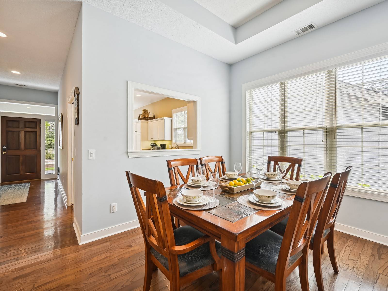 The main floor is tastefully decorated in coastal décor and colors. Very relaxing and cool with the ceiling fans going to keep the cool air circulating and clean, hardwood floors on the first floor, including the master bedroom. The kitchen is a fully stocked kitchen, with an adorable breakfast nook at the end in front of the bay style window.