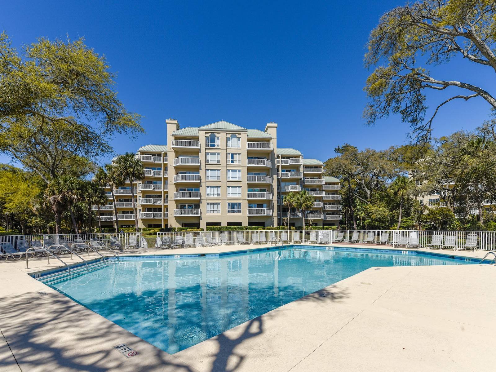 502 Barrington Arms offers outstanding oceanfront views from this top floor Palmetto Dunes Vacation villa in Hilton Head, SC. Guests can enjoy the 5th floor panoramic views of the lagoon, oceanfront pool, and the Atlantic Ocean. The large covered balcony can be accessed through a sliding glass door from either the living room or the master bedroom. It offers a round table with 4 upright chairs and also a high top table with 2 bar chairs.