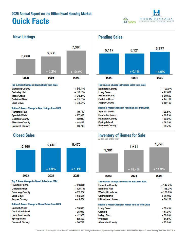 Listings: Comparing 2025 to the prior year, the number of homes available for sale was up by 11.3 percent. There were 1,793 active listings at the end of the year. New listings increased by 10.5 percent to finish the year at 7,384.
