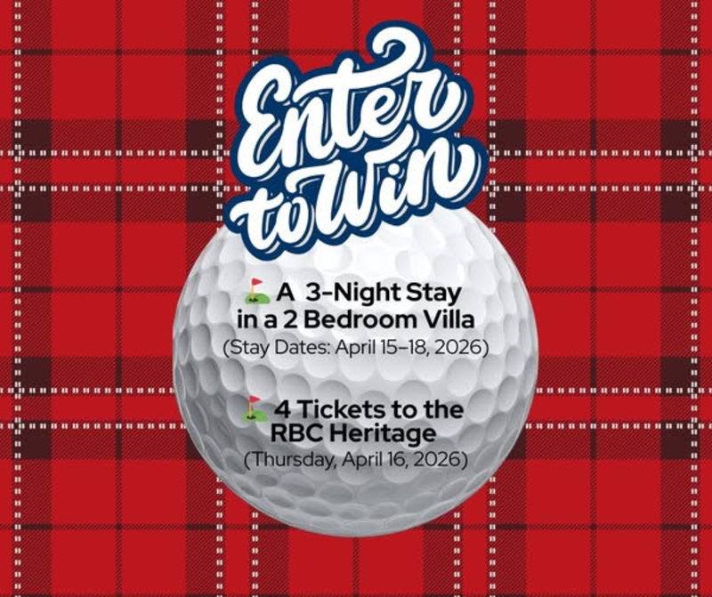 We’re teeing up something special for one lucky winner! Enter for a chance to win a stay 3-night stay and tickets to the 2026 RBC Heritage!