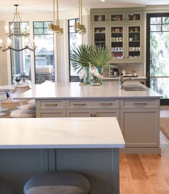Health was a top priority throughout 2020 and many homeowners turned to better ways of cooking to promote it. Being home more also gave people the opportunity to experiment with new flavors and dishes. With a renewed This kitchen incorporates neutral colors, a large island for both cooking and workspace and plenty of natural light from floor to ceiling windows.